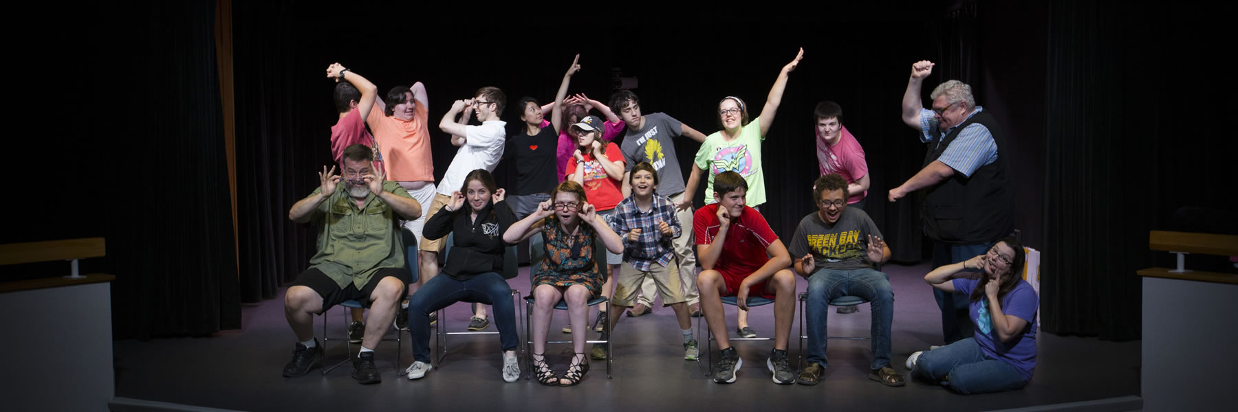 Neurodiverse high school students are invited to sign up for an afternoon improv theater camp that takes place Monday through Friday from 1-4:30 PM for one week. No prior experience with improv is necessary. Many of our students return to camp over multiple years, and several students who have graduated high school have returned to camp in an adult mentorship role.